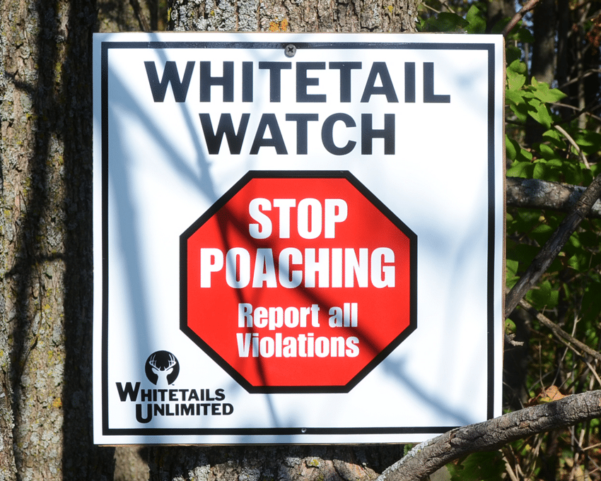 Whitetail Watch is an anti-poaching initiative created by Whitetails Unlimited to improve hunter/landowner relations and reduce the crime of poaching. To curb this illegal activity, participating landowners will post Whitetail Watch signs on their property. These signs will serve as visible reminders to poachers that citizens are on the watch and suspicious activity will be reported to the wildlife law enforcement.