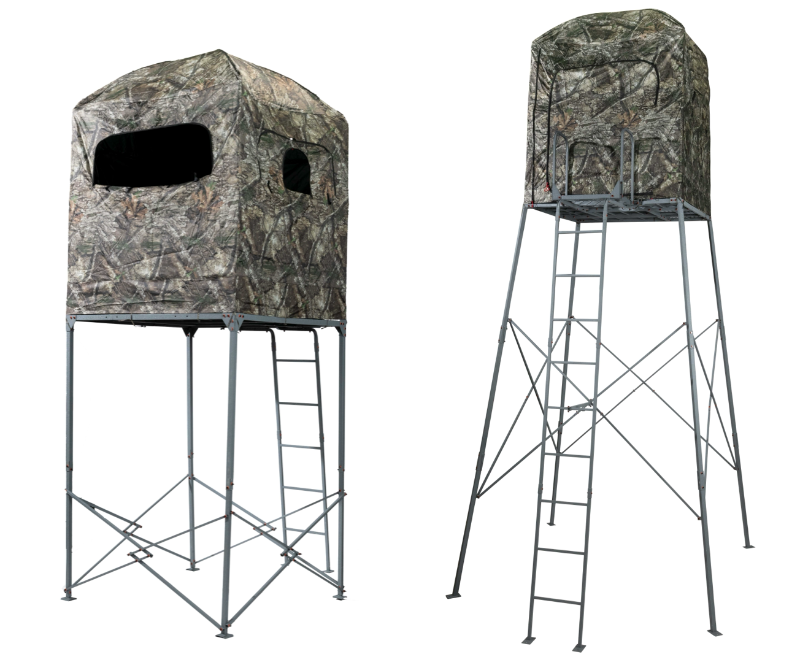 For the hunter who wants to rule their domain from up above, the Fortress Deluxe delivers. Standing at a commanding 12 feet to the platform, this quad pod offers an expansive, panoramic view of the surrounding terrain. The large platform serves as a perfect foundation for a fully enclosed blind, creating a comfortable and weather-protected elevated cabin that keeps you hidden and in control.