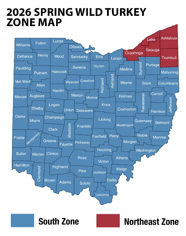 The 2026 spring wild turkey season is split into two zones.