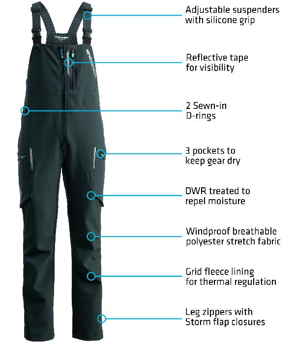 - Access: Covered leg zippers for easy dressing over heavy boots