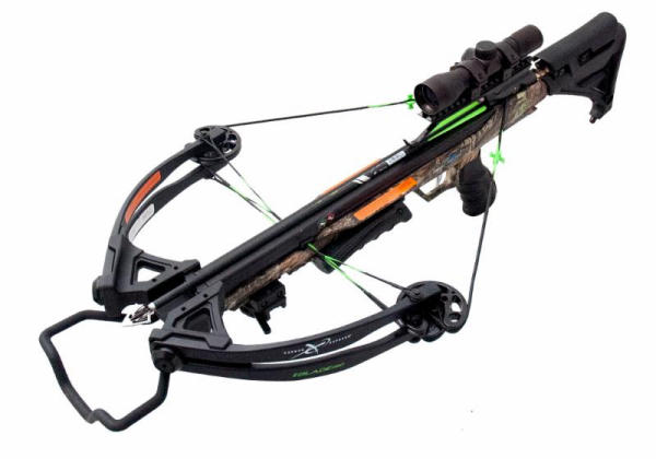 With features like an extruded aluminum rail for repeated accuracy, durable, compression-molded limbs, and an ultra-comfortable overmolded soft-grip handle, the Carbon Express X-Force Blade Pro crossbow delivers the feel, the power and the kill. It is offered in a ready-to-hunt package that includes a rope cocker, quick-detach three-arrow quiver, three PileDriver 20-inch crossbolts, rail lubricant, three practice points and a 4x32mm optic.