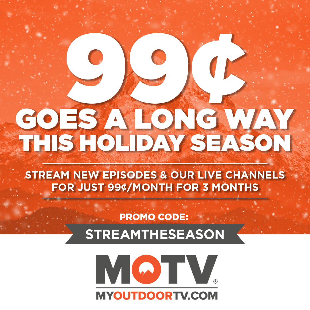 “For high-energy entertainment in the field, on the water, or in the comfort of home, you can't beat three months of MyOutdoorTV for just .99 cents month,” shared Sr. Vice President and MOTV General Manager Sean Luxton. “This holiday deal won't last long, so head to MyOutdoorTV.com and sign up before it's gone.”